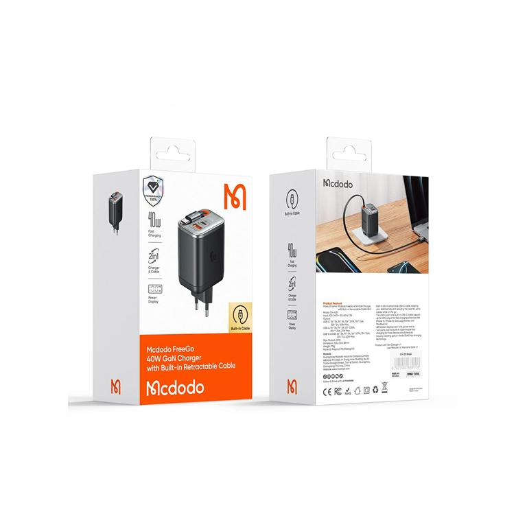 شارژر دیواری سه پورت GaN مک دودو CH-4281 | توان 40 وات + کابل تایپسی جمعشونده