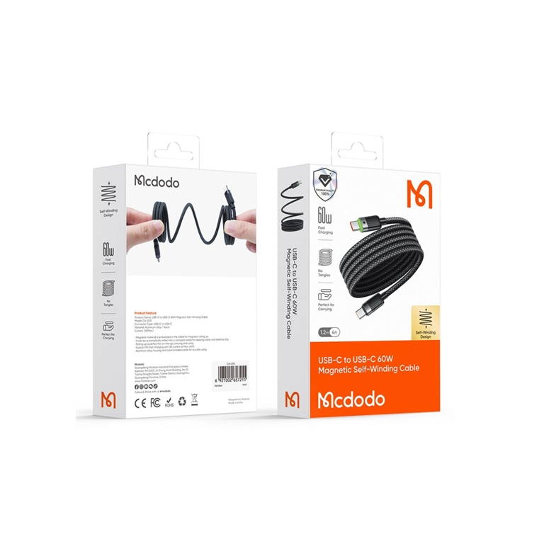 کابل Mcdodo CA-2000 با طراحی مغناطیسی جمعشونده خودکار، تجربهای منظم، بدون گره و شلوغی را برای شما فراهم میکند.