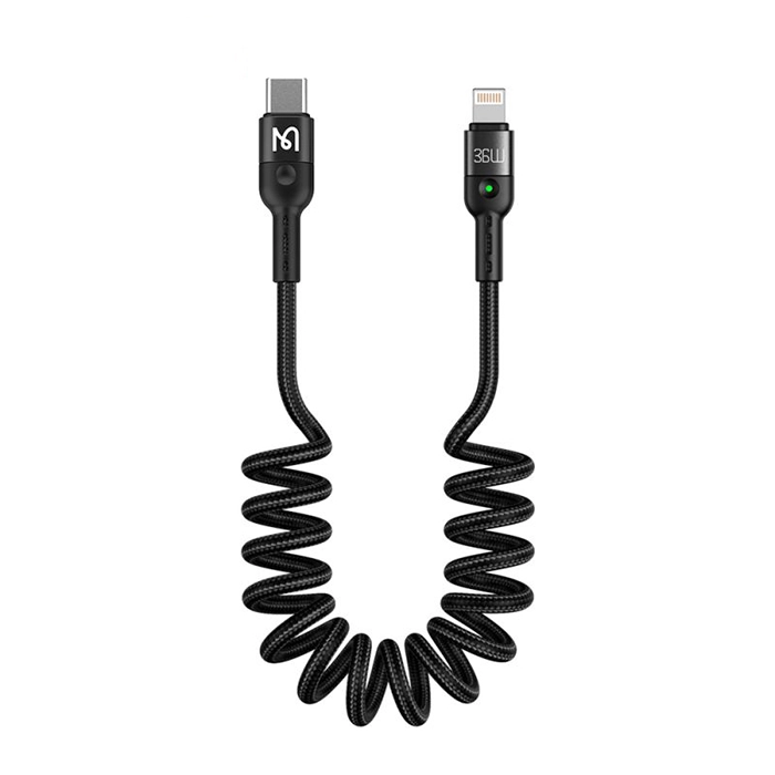 کابل شارژ فنری تایپسی به لایتنینگ مکدودو CA-1960 | فست شارژ 36 وات آیفون، طول 1.8 متر