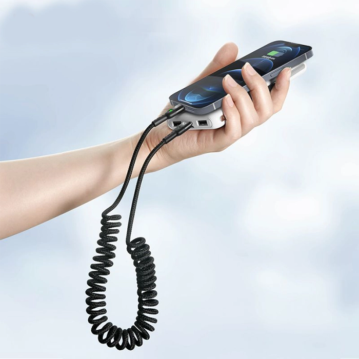طراحی فنری هوشمند آن علاوه بر جلوگیری از گرهخوردگی، فضای کمتری اشغال کرده و برای استفاده در خودرو یا کنار میز کار عالی است.
