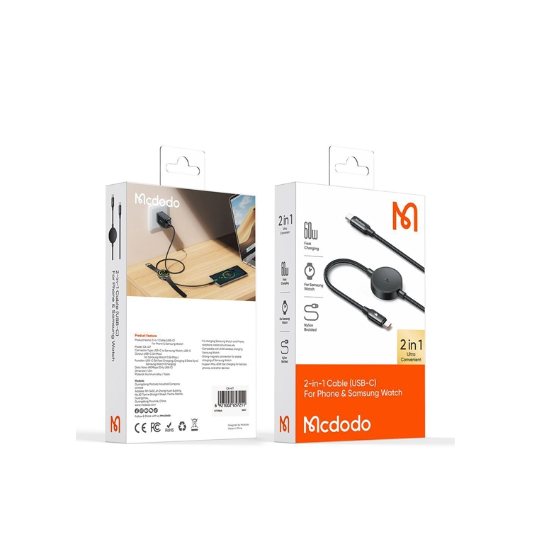 کابل شارژ تایپ سی دوکاره مکدودو CA-4170 | شارژ سریع ۶۰ وات + وایرلس Galaxy Watch | طول ۱.۵ متر