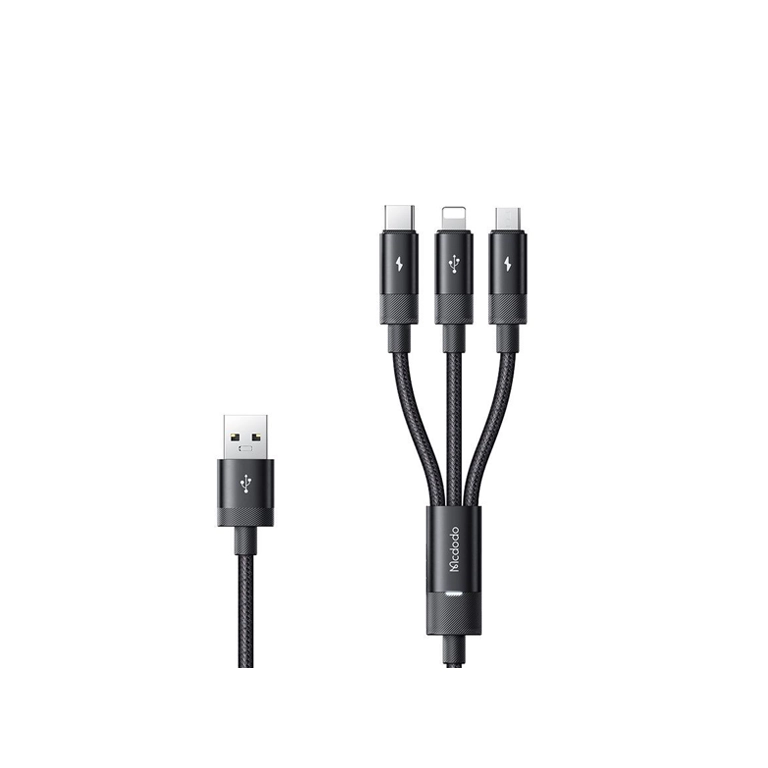 کابل شارژ چندکاره مکدودو CA-5790 | شارژ سریع ۳ آمپر + Type-C، Lightning و Micro USB | طول ۱.۲ متر | iDigie