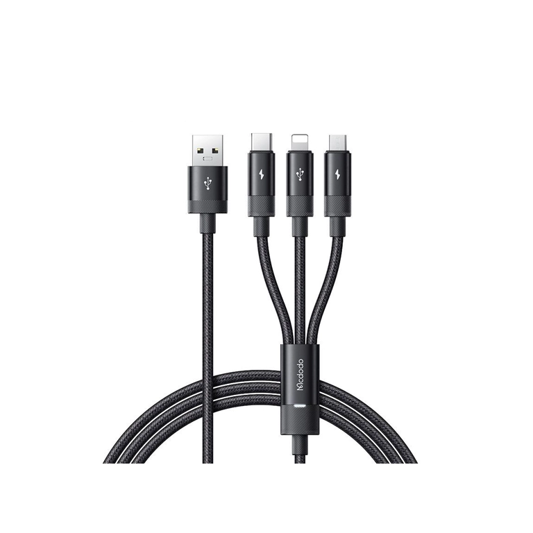 کابل شارژ چندکاره مکدودو CA-5790 | جریان ۳ آمپر، تایپسی، لایتنینگ و میکرو | شارژ سریع و انتقال داده ۱.۲ متر