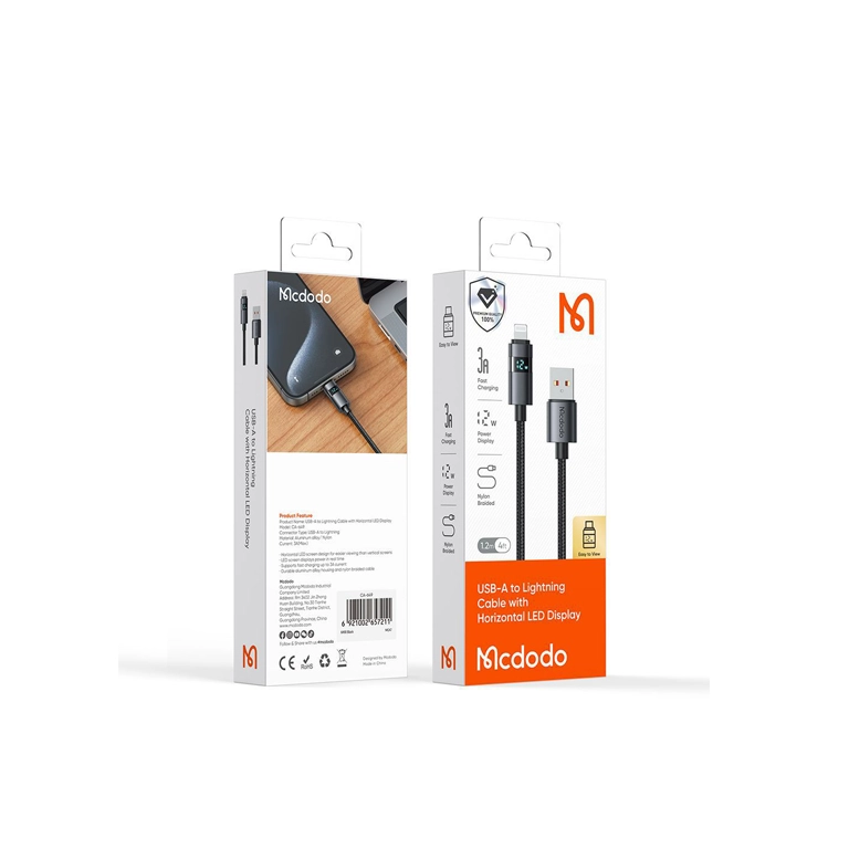کابل شارژ سریع آیفون مکدودو CA-6490 | لایتنینگ 3 آمپر با نمایشگر دیجیتال و کارپلی