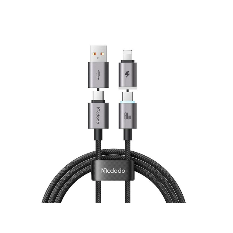 کابل شارژ چندکاره مکدودو CA-6560 | مگنتی ۴ در ۱، توان ۶۰ وات + USB-A، تایپسی، لایتنینگ و میکرو | طول ۱.۲ متر
