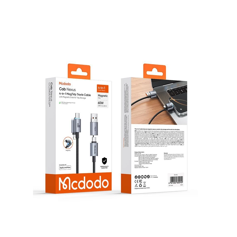 کابل Mcdodo CA-6560 یک کابل مگنتی ۴ در ۱ حرفهای است که برای کاربران چند دستگاهی طراحی شده است.