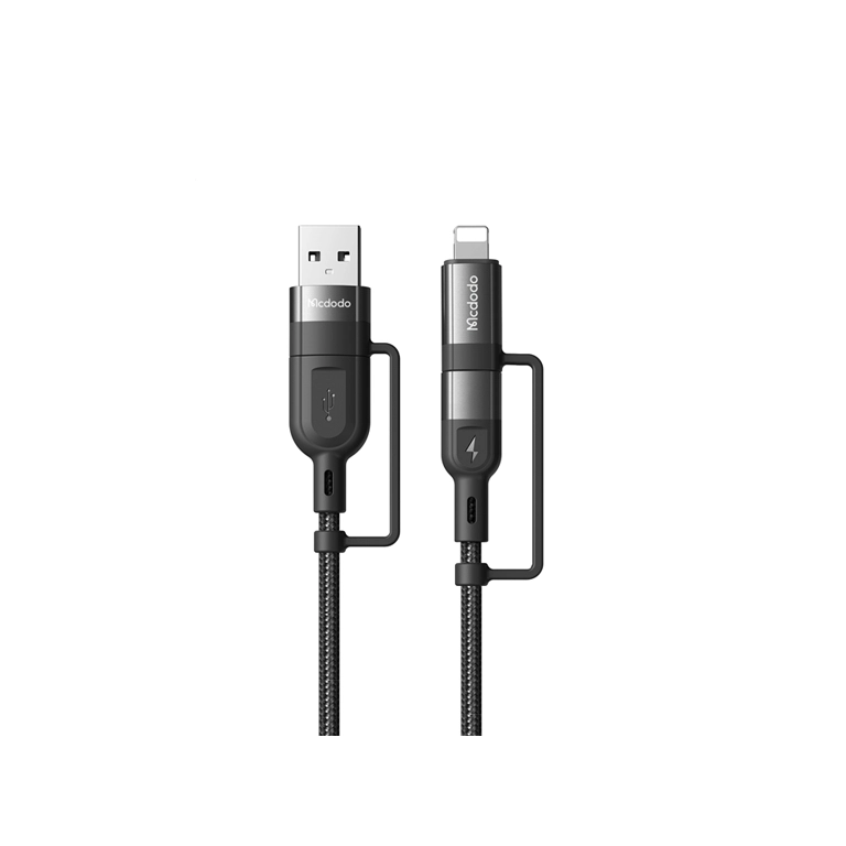 کابل شارژ چندکاره مکدودو CA-8070 | کابل ۴ در ۱ سریع با توان ۶۰ وات و کانکتورهای تایپسی، لایتنینگ و USB-A | طول ۱.۲ متر