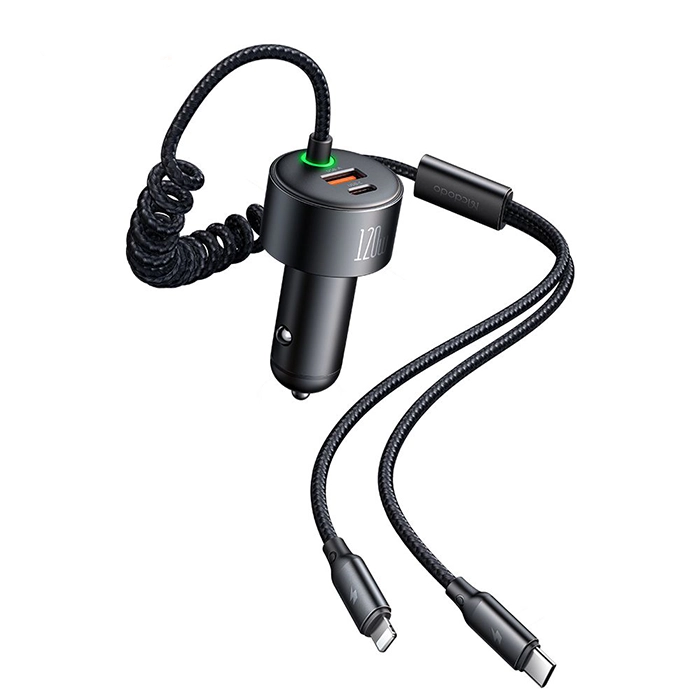 شارژر فندکی مکدودو CC‑0370 | با 2 پورت ۱۲۰ وات + کابل Type‑C و Lightning