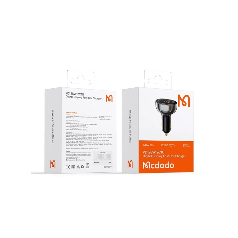 شارژر فندکی مکدودو CC‑4450 | با ۳ پورت ۱۲۸ وات + PD/QC، فست شارژ، نمایشگر دیجیتال