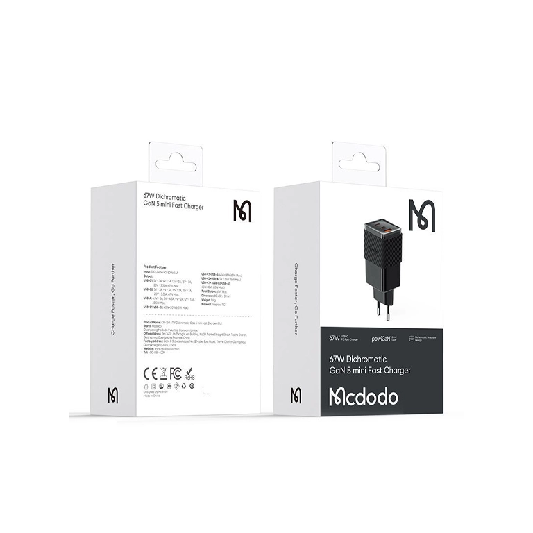 شارژر دیواری و آداپتور لپتاپ 3 پورت 67 وات مک دودو CH-1501 GaN5 | مینی و فست شارژ