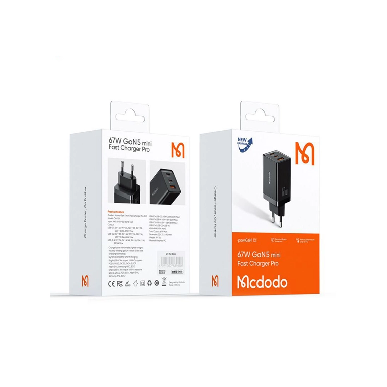 شارژر آداپتور دیواری مینی 3پورت 67وات مک دودو مدل MCDODO CH-1541 GaN5 PRO