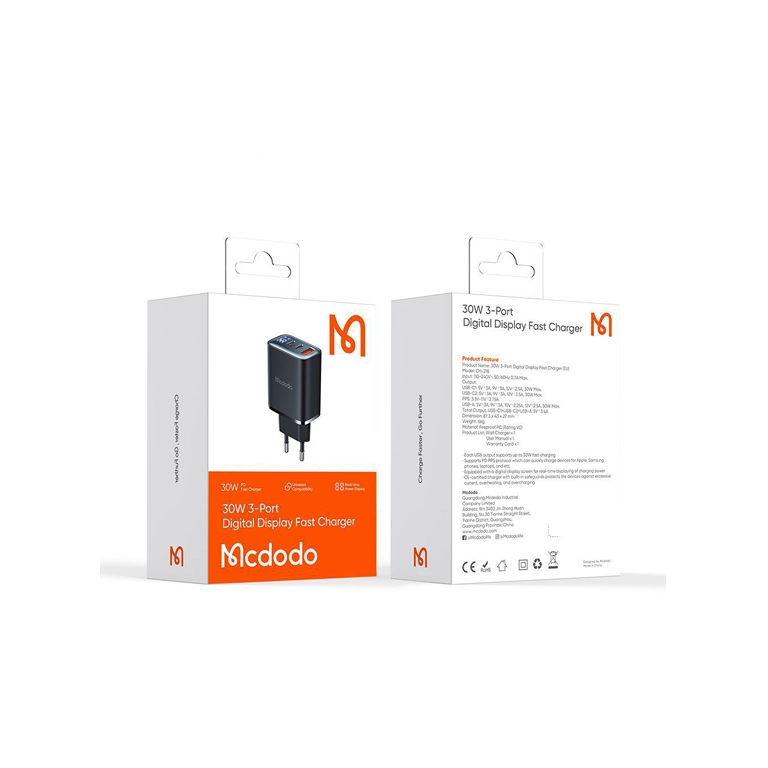 شارژر اصلی ۳۰W مک دودو CH-2180 | سه پورت (۲C+۱A) | نمایشگر دیجیتال LED | فست شارژ PD/PPS