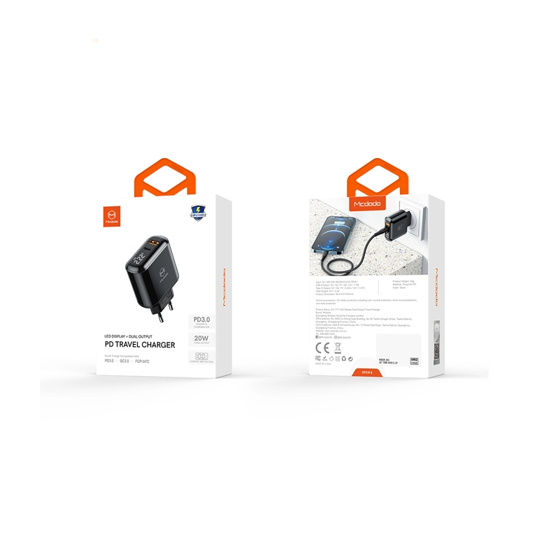 به دنبال شارژر وات هستید که چیزی بیشتر از سرعت ارائه دهد؟ شارژر دیواری مک دودو نسل جدید آداپتورهای فست شارژ است. این دستگاه با نمایشگر دیجیتال خود، برای اولین بار امکان مشاهده لحظهای آمپر و ولتاژ خروجی را فراهم میکند و مجهز به پورت شارژ سریع ( و ) با پشتیبانی از و است. با دوشاخه سازگار با ایران، بهترین پک فست شارژ برای آیفون و اندروید است. خرید مطمئن این شارژر نوآورانه را با گارانتی تجربه کنید.