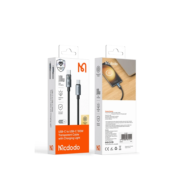 کابل شارژ سریع تایپسی به تایپ سی مکدودو CA-558 | توان 100 وات، 5 آمپر، طول 1.2 متر | iDigie