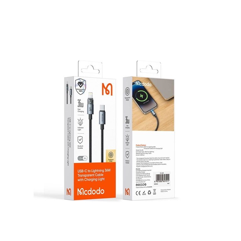 کابل شارژ سریع تایپسی به لایتنینگ مکدودو CA-694 | توان 36 وات، کارپلی، طول 1.2 متر