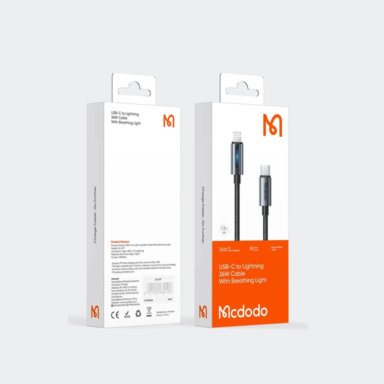 کابل شارژ سریع تایپسی به لایتنینگ مکدودو CA-5710 | توان ۳۶ وات، جریان ۳ آمپر، طول ۱.۲ متر با گارانتی