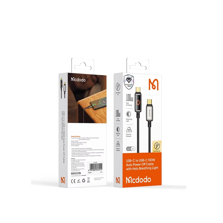 کابل شارژ سریع تایپسی به تایپسی مکدودو CA-6680 | توان100 وات، 5 آمپر، قطعکن خودکار | 1.2 متر