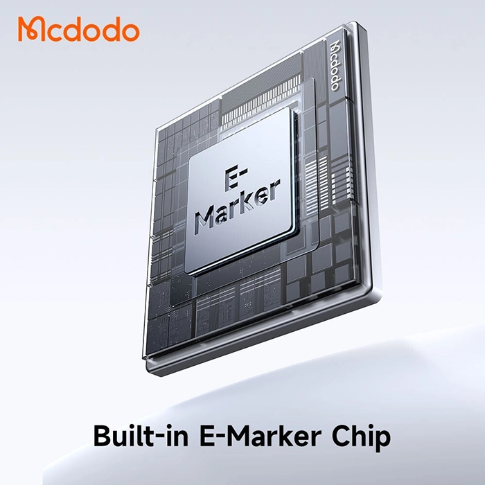 تراشه هوشمند (E-Marker Chip): تنظیم خودکار جریان و ولتاژ برای شارژ ایمن و جلوگیری از گرم شدن بیش از حد.